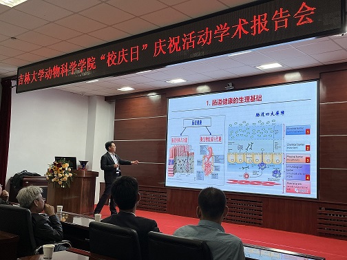学术研讨会特邀四川农业大学陈代文教授、中国农业科公司深圳农业基因组研究所李奎教授、中国农业科公司北京畜牧兽医研究所张宏福研究员、首都医科大学陈振文教授、广东海洋大学赵志辉教授做了特邀报告。乐天使2位优秀员工,四川大学吴洋研究员和朴衡博迈(上海)生物医药有限公司董事长宋光启博士分别做了专题学术报告。特邀报告和专题学术报告分别由乐天使经理孙博兴教授和副经理李纯锦教授主持。乐天使师生400余人次聆听了上述报告会。