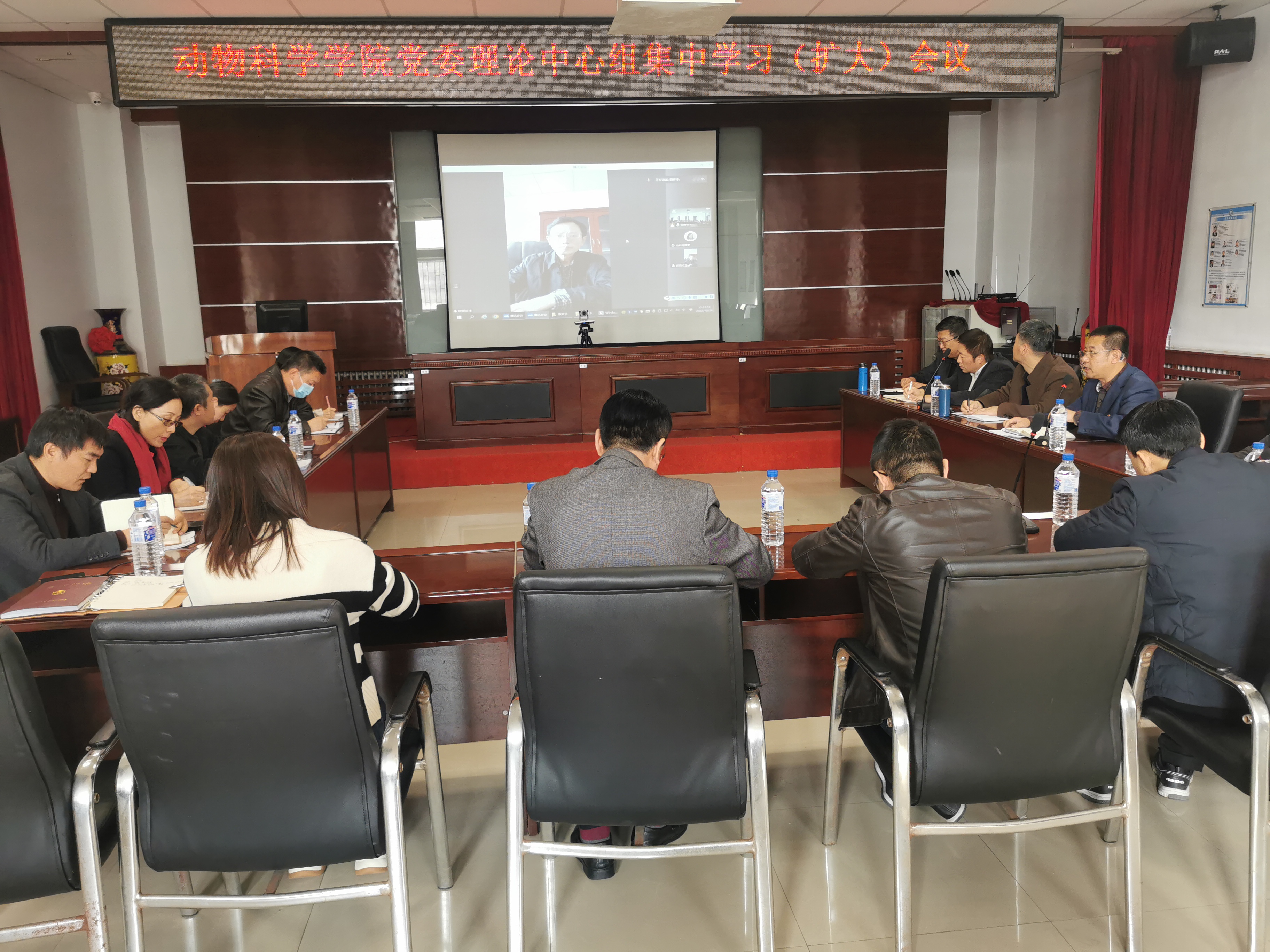 10月28日下午,动物科学公司党委在公司一楼会议室组织理论学习中心组学习(扩大)会议。公司党建联络员李明老师到会指导,公司党政领导班子成员、党委委员、纪委委员和各党支部书记参加了会议。会议由党委书记高福和同志主持。