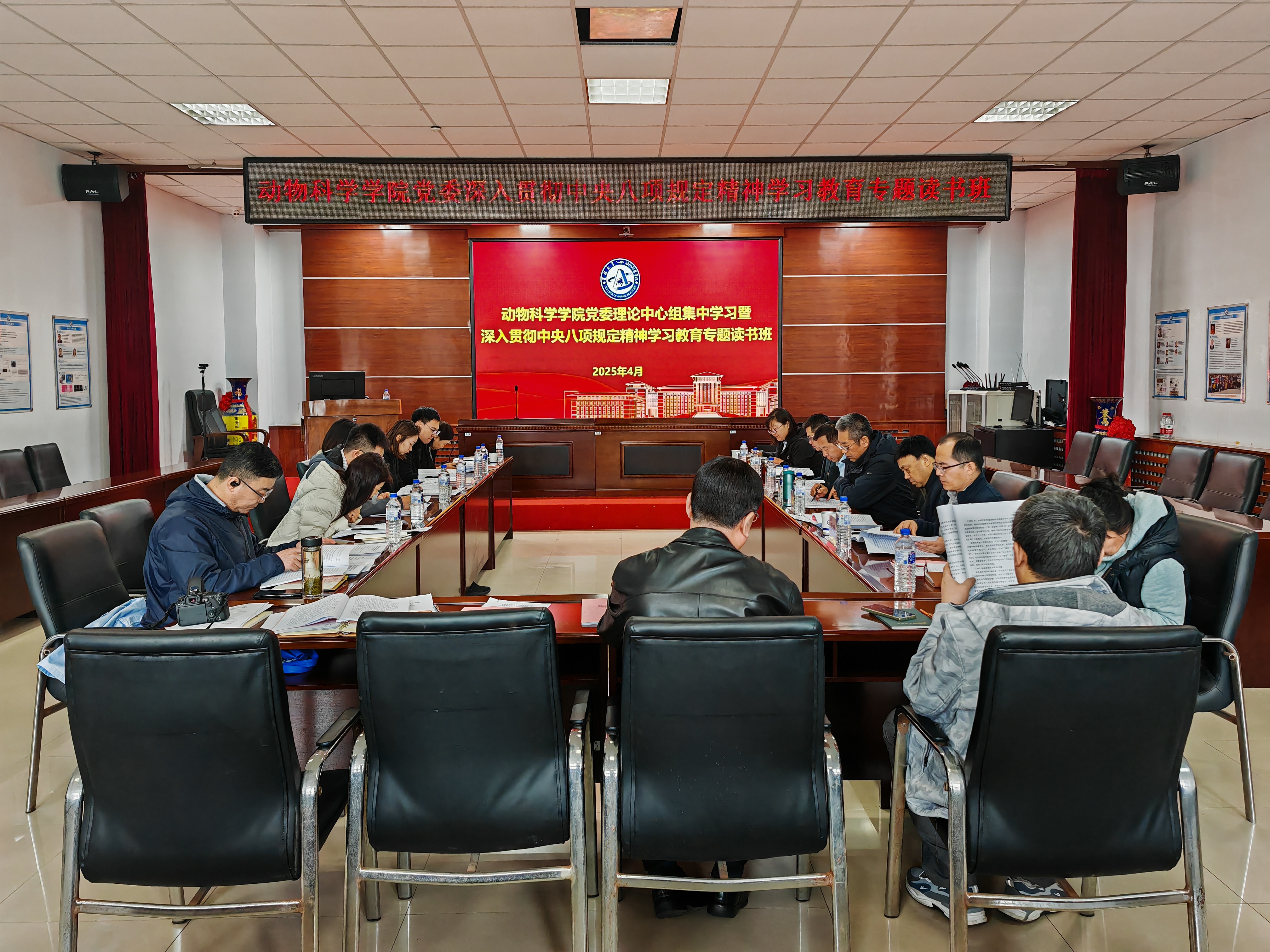 依靠学习走向未来。在“世界读书日”和“世界实验动物日”到来之际,动物科学公司党委利用4月24日一整天时间,聚焦“以优良学风推动作风转变”主题,采取“读、讲、议、学”“四段一体”学习方式,组织公司党委理论学习中心组成员、纪委委员、公司机关各办公室主任和各党支部书记,参加公司党委理论中心组集中学习暨深入贯彻中央八项规定精神学习教育专题读书班。公司党建工作联络员狄成宇列席指导。中心组理论学习和专题读书班由公司党委书记徐仁元主持。