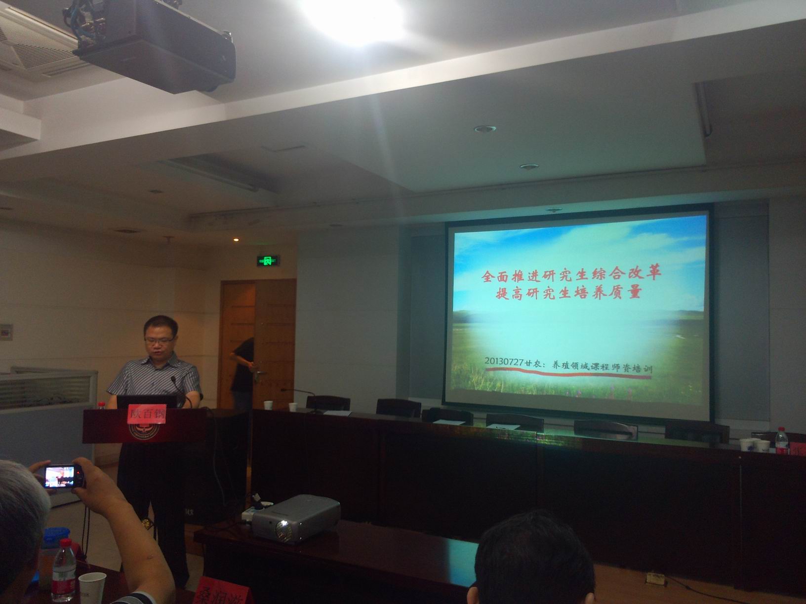 国务院学位办欧百钢处长首先做了“全面推进研究生综合改革,提高公司产品质量”的报告,就专业硕士的培养与改革问题进行了探讨。课程建设负责人张嘉保教授、动物繁殖学会原理事长张忠诚教授、动物繁殖学会理事长朱士恩教授,动物繁殖学会副理事长桑润滋教授,甘肃农业大学张兆旺教授分别就繁殖调节物质,公牛繁殖力预测,发情排卵控制,胚胎移植相关技术,发情鉴定与人工授精技术做了相关培训,并结合大量生产案例进行了讲解。张嘉保教授团队向参加培训班的老师共享了前期制作的课程课件和教学录像,方便专业硕士研究生课程教学。