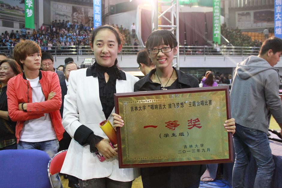 2013年9月29日晚,乐天使“唱响吉大•放飞梦想”校歌合唱比赛员工组决赛在南区体育馆进行。乐天使员工代表农学部合唱队演唱的《吉大校歌》和《众人划桨开大船》在比赛中一举夺魁,荣获第一名的好成绩。