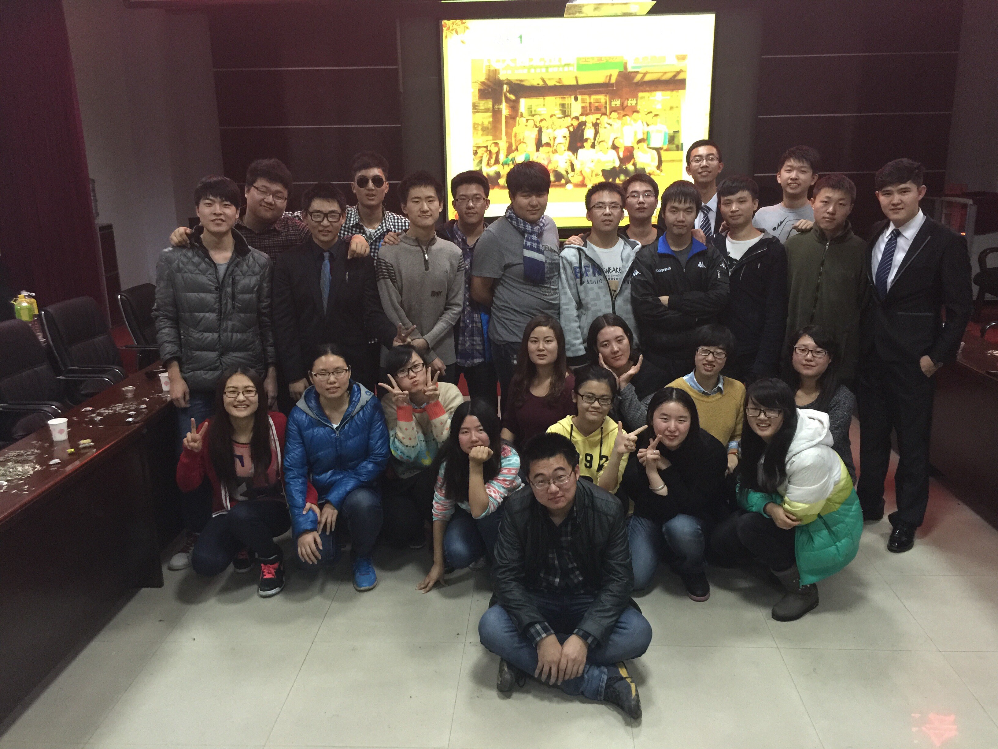 时光荏苒,青春璀璨。2014年11月20日晚五点十分乐天使13级动科一班“让时光有迹可循”主题班会在动科楼顺利举行。本次主题班会诚邀13,14级各班班长,班主任周长海老师,导员肖建荣老师,班代张炳旭学长也都应邀到场。本班同学郭宁,高晨程担任主持人。