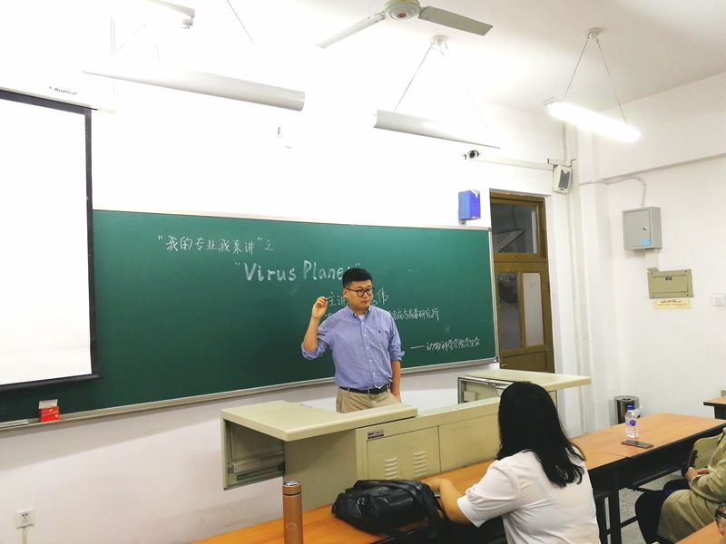 此次魏伟副教授从病毒的最早被发现到病毒的入侵与受体识别,再到病毒的定向进化与轨迹重塑,深入浅出的介绍了病毒的相关知识,在说明了相关专业的研究方向后,魏伟副教授又为在场的本科生进行了关于考研与就业方面的答疑。13级实验动物专业的沈思宇更是用自己的亲身经验向在座的同学介绍了当今的研究与就业情况。