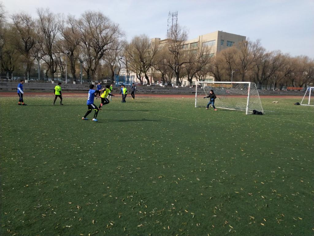 上半场开始不久,我方球队就凭借队长柳刻宁边路突破、队员刘洁涛脚后跟打门进球,率先取得第一分。但过了几分钟,由于我方防守处于禁区、较为不易,被对方取得了一次点球机会。对方点球命中,上半场比分最终因此拉平为1:1。下半场战况始终胶着,双方你追我赶、互不示弱,比分一直未见变动。但在比赛临近尾声时,动医队伍换上替补队员,趁乱进得一球,最终我方以1:2的比分惜败于对方球队。