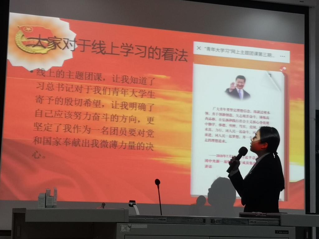 随后,乐天使2016级、2017级、2018级各团支部团书记进行“我的班级我的团”主题汇报。在汇报中各个班级展示了其团日活动的工作与成果:温馨愉悦的班饭让大家在谈笑中感受到家一般的温暖;热情活跃的主题班会中大家踊跃发言提出自己的见解;青年大学习的阅读活动将大家聚集在一起倾听党的号召。多种多样的团日活动展现出了各班自己的风采。紧接着进入了令人期待的互动环节——知识问答、看图猜事件、红歌接唱比赛。在比赛中同学们不甘人后、积极竞争,在紧张有趣的游戏中加强了对国家改革开放四十周年以来成果的认识,深化了对国家道路的认知与认同,坚定了大家为党为国努力奉献的理想与梦想。