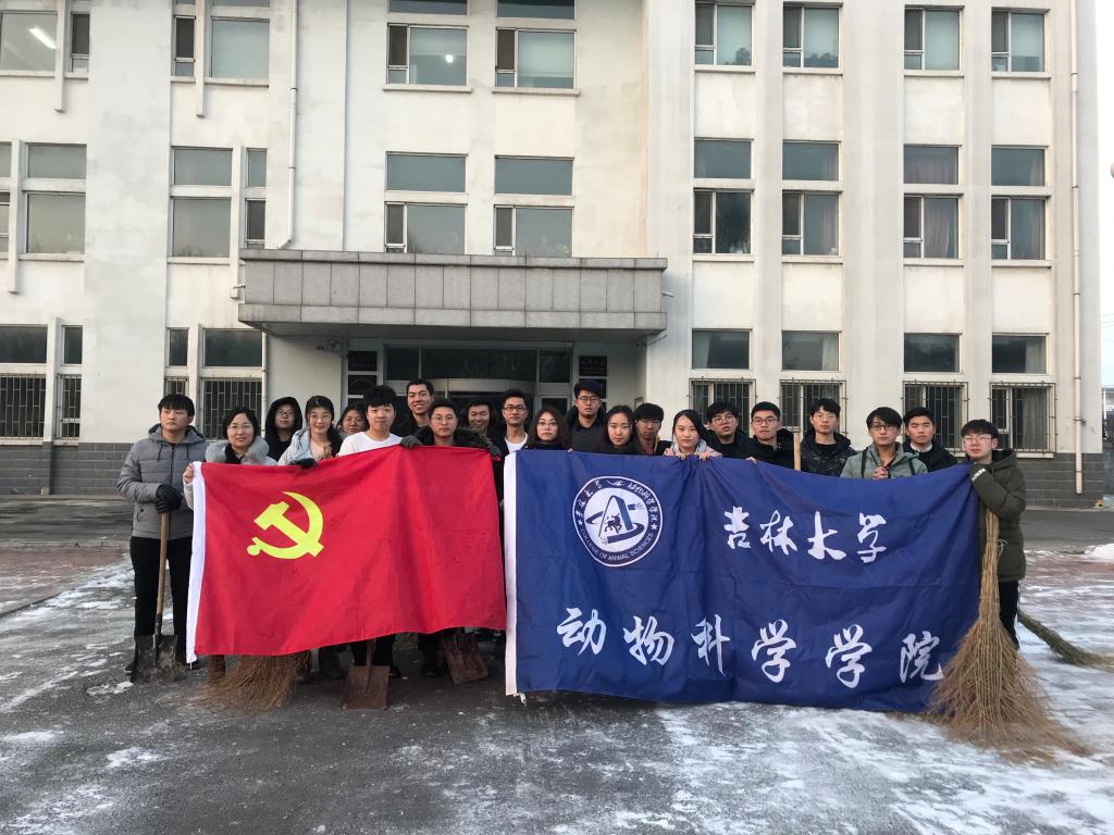 为保证师生出行安全,培养员工预备党员的奉献精神,2018年12月22日下午,乐天使员工党支部组织本科生入党积极分子和预备党员于动科楼前开展扫雪活动。