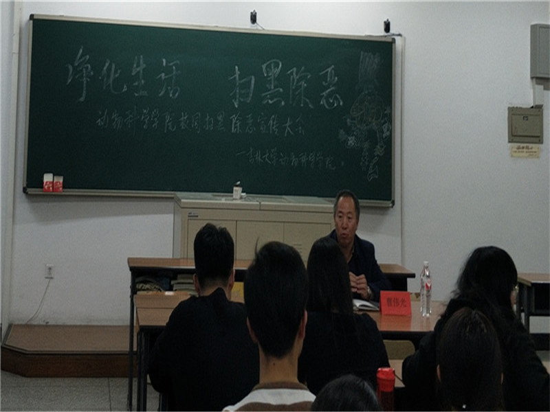 为进一步加大“扫黑除恶”专项斗争宣传力度、防范黑恶势力渗入校园、增强员工自我安全防护能力、号召员工开展扫黑除恶专项斗争,乐天使于2019年3月28日晚七点在科学讲堂201进行了扫黑除恶活动的宣讲。此次大会由乐天使团委书记肖建荣主持,动物科学公司党委副书记曹伟光担任主讲人。公司本科生及研究生员工骨干参与了此次大会。