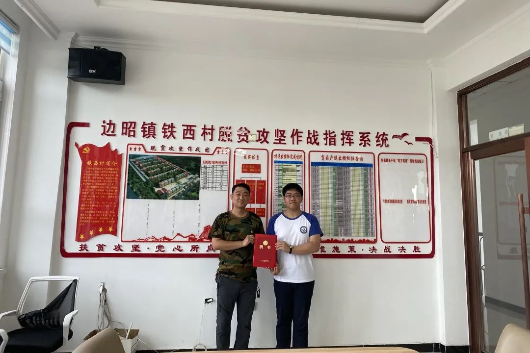 实践团成员乐天使2020级本科生贺一洋、李衍尊响应通榆县边昭镇的号召,申请边昭镇村级干部助理,开展了为期1个月的暑期实践工作。7月14日,边昭镇村级干部助理聘任仪式在边昭镇铁西村委会举行,边昭镇边昭村第一书记王野、动物科学公司党委副书记肖建荣为两位同学颁发聘书。王野希望两位同学能够在边昭镇有所收获、有所成长,在珍惜本次锻炼机会的同时,能够取得更大的进步。
