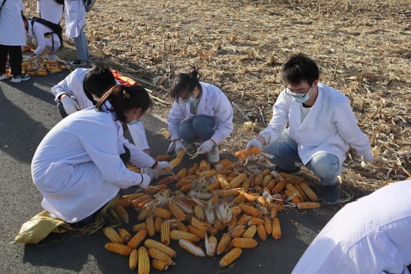为增加秋收活动的趣味性,公司还在同学们分组的基础上,设置了田间玉米收集竞赛、识别了解中草药、胡萝卜采拔以及“玉米王中王”现场评选等四个游戏竞赛环节。在田间玉米收集竞赛环节中,同学们四人一组,分工明确,在活动开始后迅速收割田地中残留的每一根玉米。时间悄然流逝,收集结束后,各小组将劳动果实转移到集中处理点,认真清点玉米数目,并甄选出大且饱满的“玉米王中王”候选者。装袋整理完玉米后,全体成员一同前往基地中草药园交互式作物课堂。经过农业实验基地副主任郝宏智老师介绍以及“识花君”APP的辅助,员工了解到枸杞、刺五加等多种中草药的生命周期和生活习性。在满足浓厚求知欲的同时,同学们在郝宏智老师指导下亲自动手、实际操作,采摘下一个个形态大小风格迥异的萝卜。活动最后,进行“玉米王中王”和获奖团队的考核评比。评委按照各小组收集玉米数量颁发团体一、二、三等奖,同时以玉米的尺寸和色泽作为主要参考依据,逐一对各支队伍的参选“玉米王中王”称号的玉米进行细致鉴别,最终决定将“玉米王中王”奖项颁发给“下岗工人再就业”团队。