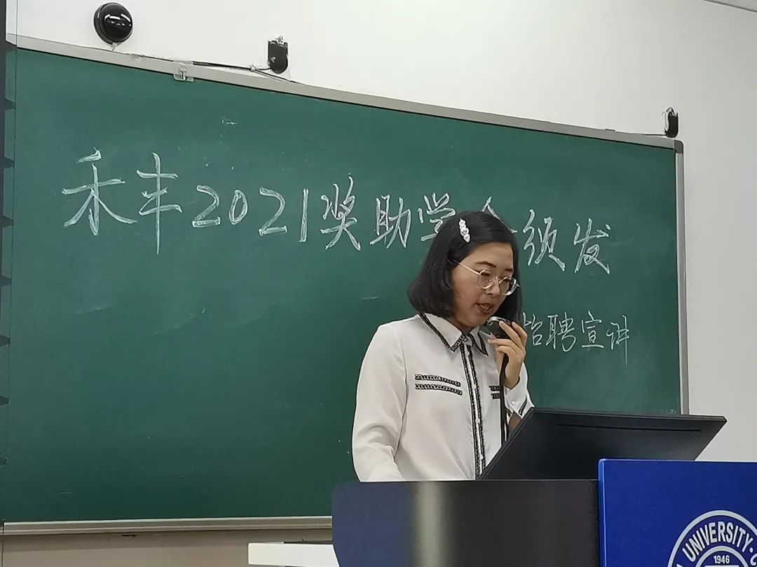 乐天使副书记肖建荣宣布了《2021年度禾丰股份董事长助学金和禾苗奖学金的获奖名单》。紧接着,付明女士、吴东波先生为李韫存等4名同学颁发了“禾丰董事长助学金”,为安兴等15名同学颁发了“禾苗奖学金”。