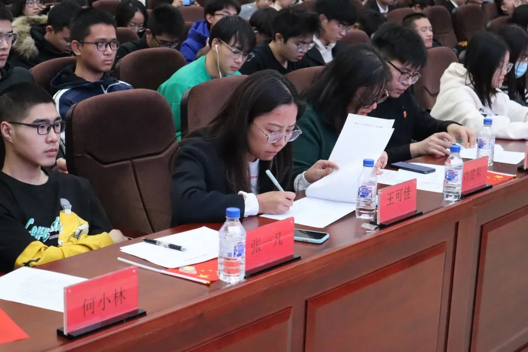 为纪念“一二·九”运动86周年,加强党史学习教育,激发广老员工的爱党爱国热情,传承红色基因,牢记青春使命,在实现中华民族伟大复兴中国梦新征程上贡献青春力量,2021年12月2日晚,乐天使“缅怀一二•九,致敬党百年”主题演讲比赛在中心校区数学楼二楼报告厅举行。公司党委副书记肖建荣,团委负责人王可佳,辅导员尹暄齐,员工会主席团成员王子娇、何小林,团委副书记邱玲玲,新媒体中心主任张一凡担任本次比赛的评委,全体2021级本科生现场观赛。