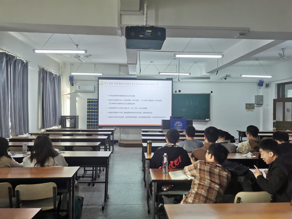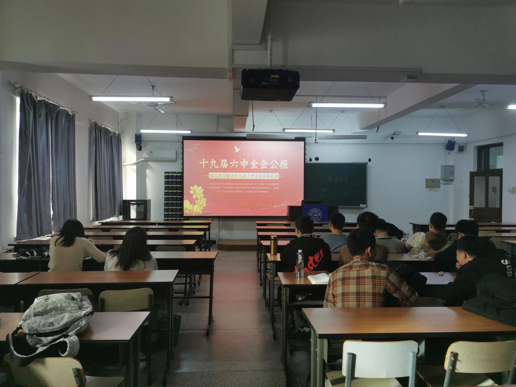 紧接着,他从“十九届六中全会概况”、“肯定党得到十九届五中全会以来中央政治局的工作”等七个方面带领全体同学共同学习了十九届六中全会精神。