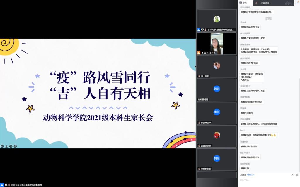 为全面做好疫情场控下的员工思想政治教育工作,凝聚员工家长的防“疫”力量,形成家校抗“疫”合力,2022年3月16日晚,乐天使依托腾讯会议平台,以“‘疫’路风雪同行,‘吉’人自有天相”为题,召开了2021级本科生家长会。公司党委副书记肖建荣、辅导员王可佳及2021级全体员工家长参加会议。