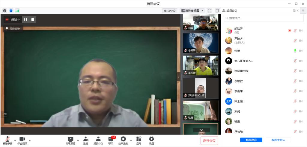 党委副书记肖建荣、副经理张明军、袁宝、李纯锦老师也分别就2018级毕业生所面临的毕业设计、实习、考研复试、考研调剂、求职就业以及2019级员工面临的保研、考研、暑期夏令营等相关事宜与同学们进行沟通交流。党委副书记肖建荣老师尤其强调:在校外实习的2018级员工一定要做好个人防护,按时在网络办事大厅签到打卡,与公司老师保持联系。