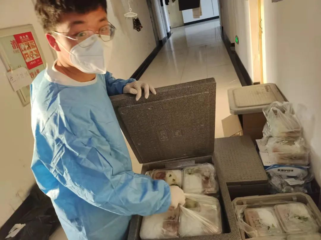 中共党员,2021级硕士生,目前担任四公寓志愿者,负责发放三楼各寝室一日三餐以及抗原自测试剂盒。