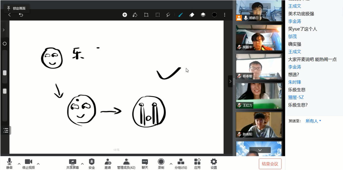 最后各位同学总结了在会议上的收获,并分享了在封校期间他们的日常生活中的趣闻与思考。