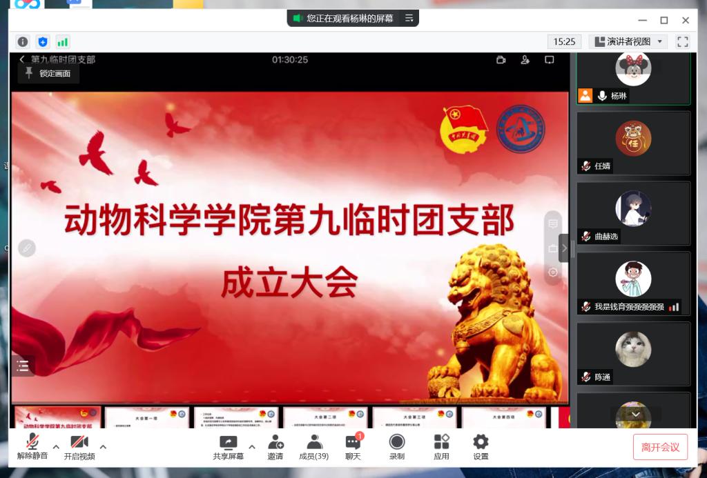 2022年3月27日,乐天使根据《关于疫情防控期间成立临时团支部的通知》,依托腾讯会议召开线上第九临时团支部成立大会,本次会议由乐天使团支部书记杨琳主持,乐天使和平校区第三、第四、第六员工公寓疫情防控临时工作岗位的全体共青团员参加。