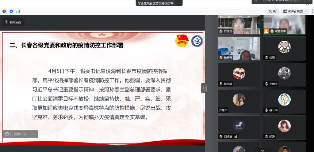活动第二项,集体学习长春市各级党委和政府对疫情防控工作的部署,全体团员对长春市当前疫情局势有了全面的了解。当前疫情虽有好转,但总体形势依旧严峻,我们万不能掉以轻心。通过此次学习,全体团员更加坚定了响应国家、政府和公司号召的决心。