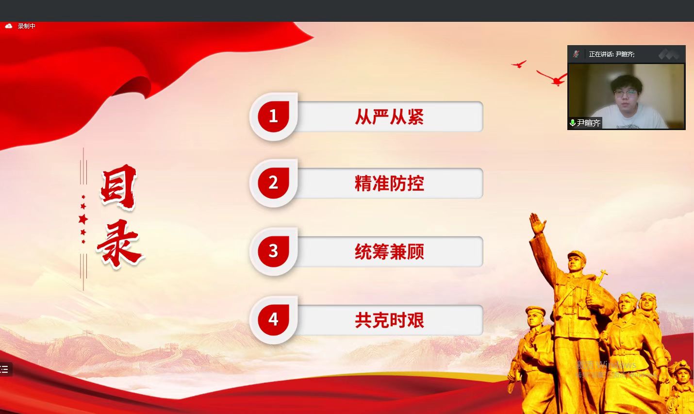 为深入学习贯彻习近平总书记关于“分析新冠肺炎疫情形势,部署从严抓好疫情防控工作”重要讲话精神,2022年4月30日晚7时,乐天使本科员工党支部于线上开展战“疫”时不我待,坚持就是胜利——学习习近平总书记关于从严抓好疫情防控工作重要讲话精神,本次会议由员工党员王文婧主持。公司党委副书记肖建荣、员工辅导员尹暄齐、王可佳以及支部全体员工党员参会。