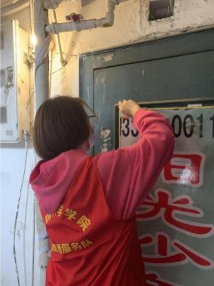 下午13时,乐天使志愿服务队到达北安社区后与工作人员完成对接。在社区书记分配调度下,志愿者划分为三个小组,在北安社区的四栋楼及周边进行小广告宣传单的清理。