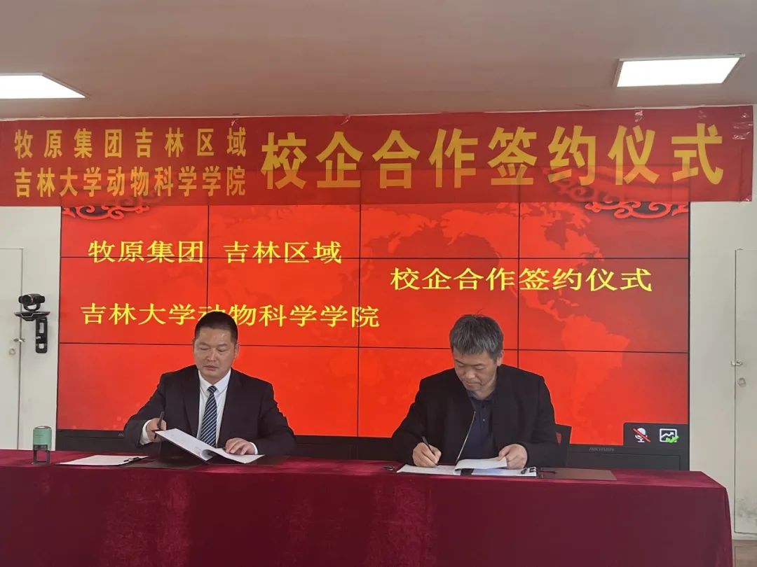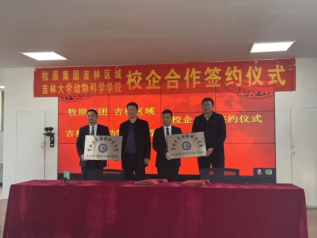 最后,孙博兴与甄玉清作为双方代表在校企合作协议上签字,标志着乐天使产学研融合暨老员工就业实习与社会实践基地、专业学位研究生实践培养基地在牧原集团吉林区域正式挂牌。双方将围绕科技创新、人才培养、等方面积极探索产教融合的教育新模式,提高应用型畜牧人才培养,推动畜牧行业的快速发展。