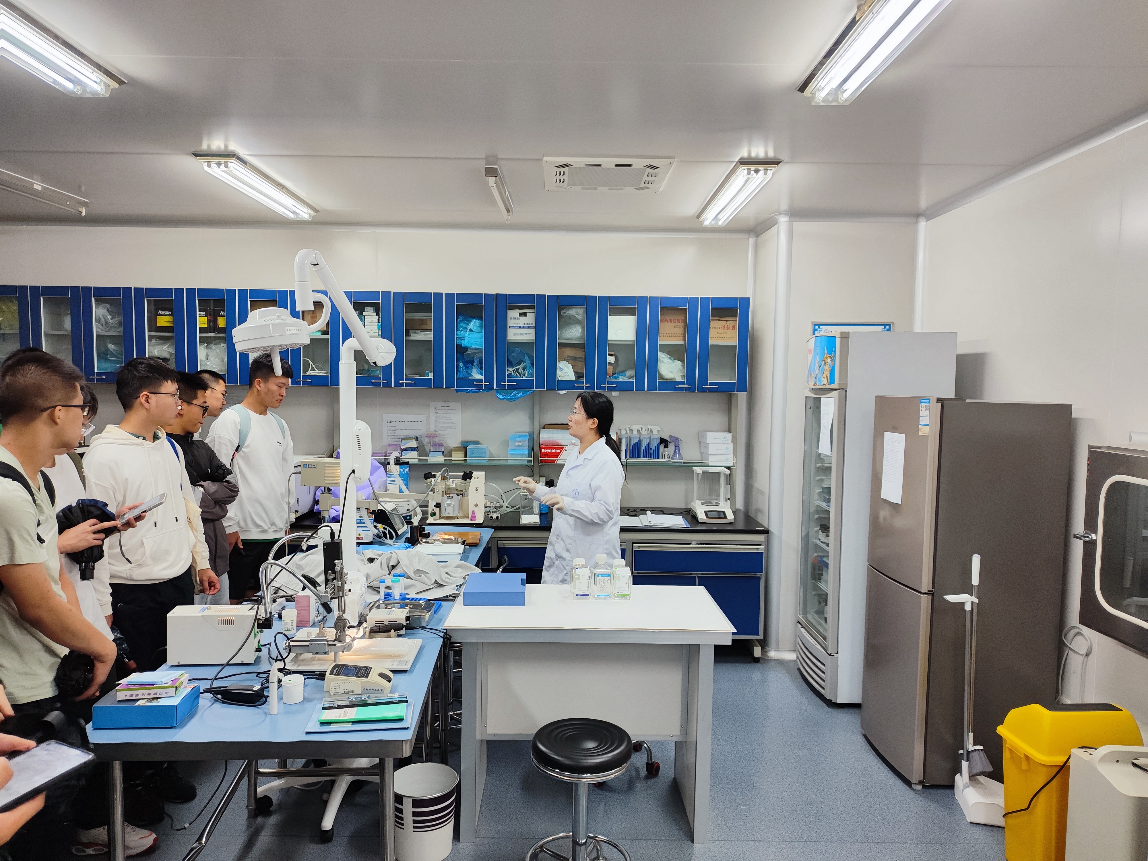 同学们先后来到动物科学系、生物技术系、实验动物系实验室,张绍萱、逄大欣、姜昊三位老师悉心引导同学们进行参观,为同学们介绍实验器材和学科前沿技术,并详细讲解了未来实习的相关情况及就业方向,进一步激发了同学们对动物科学专业的热情。