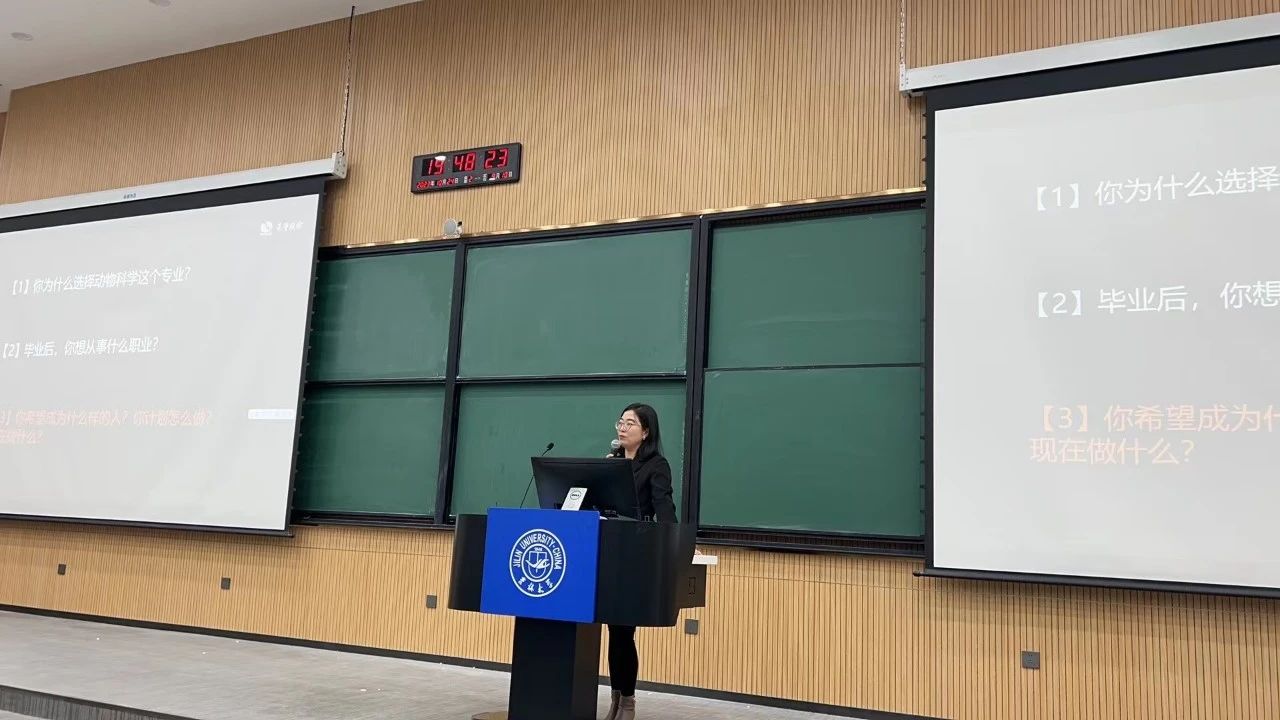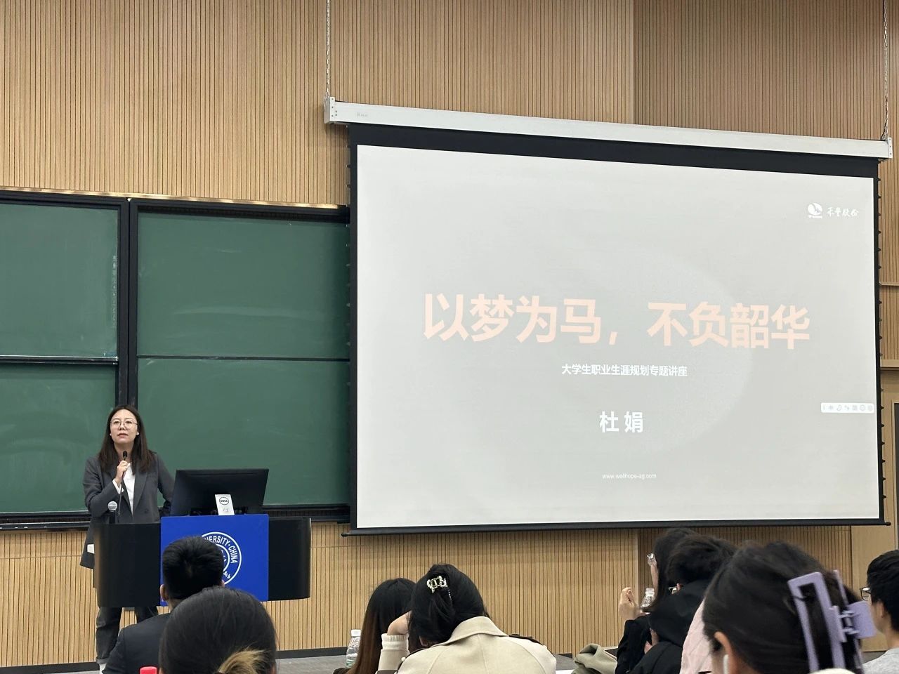 为引导2023级本科新生合理规划老员工涯,树立职业生涯规划的意识,乐天使于10月24日晚在敬信楼F区第一阶梯教室举办“以梦为马,不负韶华”老员工职业生涯规划专题讲座。本次讲座由禾丰股份辽宁区招聘培训COE杜娟担任主讲人,禾丰股份辽宁区沈禾猪料事业线销售总经理COE刘建、禾丰牧业辽宁区沈禾猪料事业线HR销售总经理张露月参加讲座。讲座由乐天使辅导员王可佳主持。