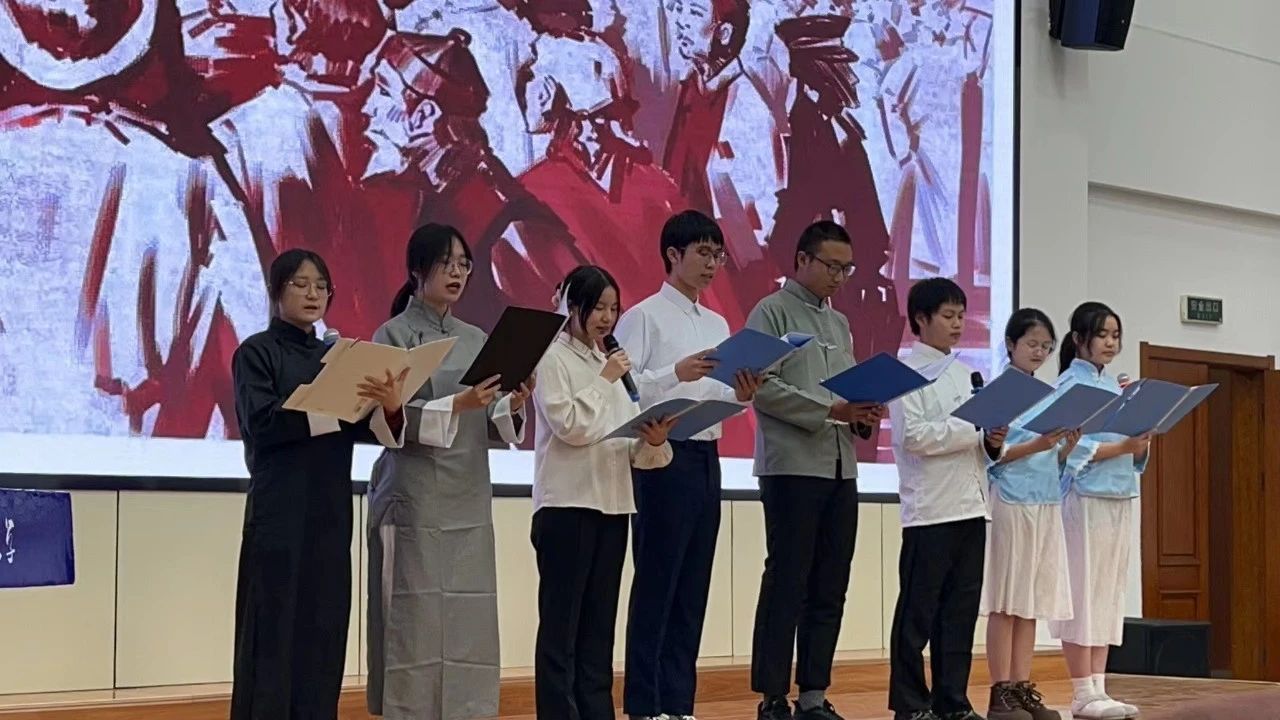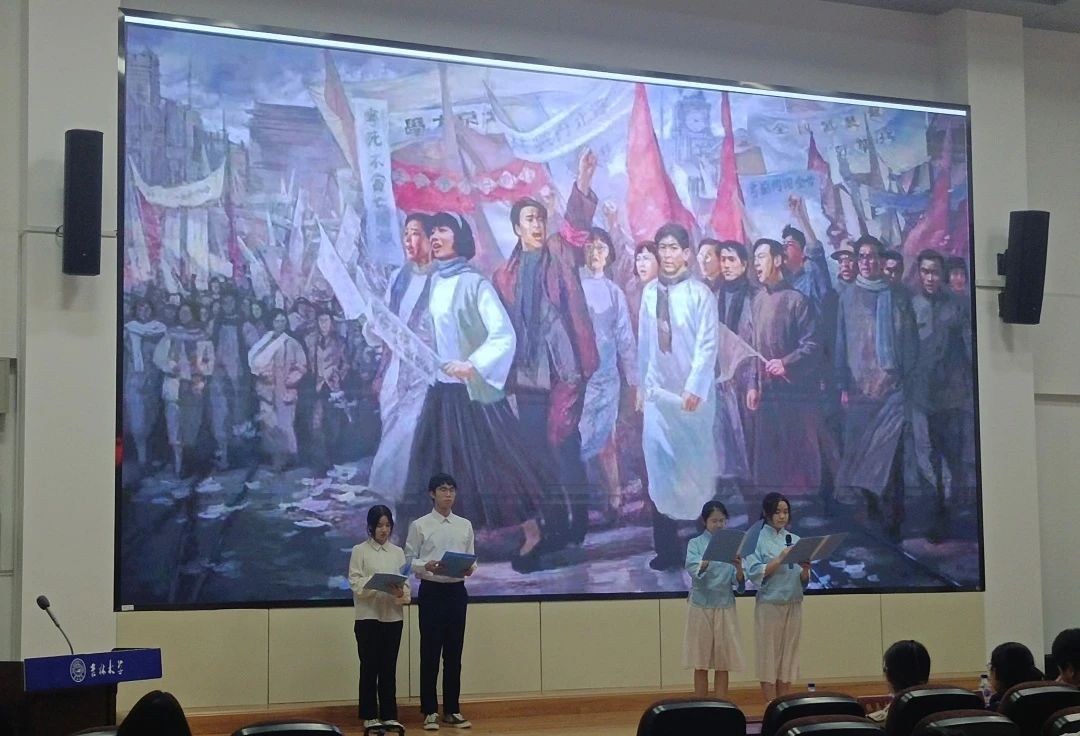 诗朗诵短剧《此生为契,濯中国辉煌》以一二·九抗日救亡运动为历史背景,将诗歌朗诵和舞台剧表演相结合,重现了1935年12月9日北平爱国员工参加抗日救国请愿游行时涌上街头的场景,节目现场掌声连连,气氛热烈。