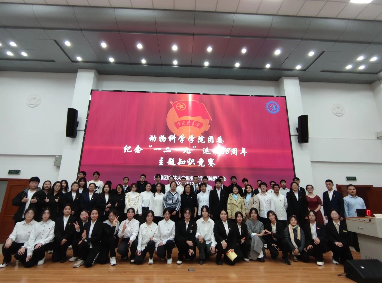 经过一个多小时的激烈角逐,2023级动物科学3班团支部代表队“勇攀高峰队”获得一等奖;2023级动物科学1班团支部代表队“初心始发队”获得二等奖;2023级动物科学2班团支部代表队“踔厉奋发队”获得三等奖。与会老师为获奖团队颁发奖项,并合影留念。