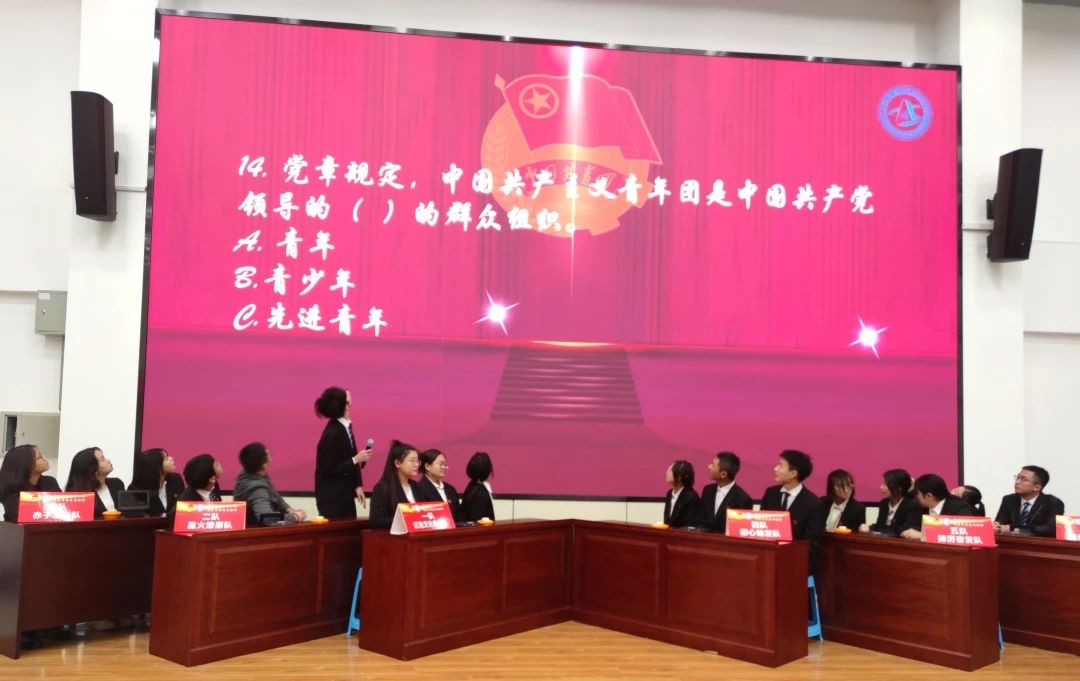 本次比赛共有来自6个团支部的18名团员参加,每个支部三人成一队。本次竞赛共设置“必答题”“选答题”“抢答题”“互动题”四个环节,内容涵盖“一二·九”运动以及部分中共党史、共青团史等知识。