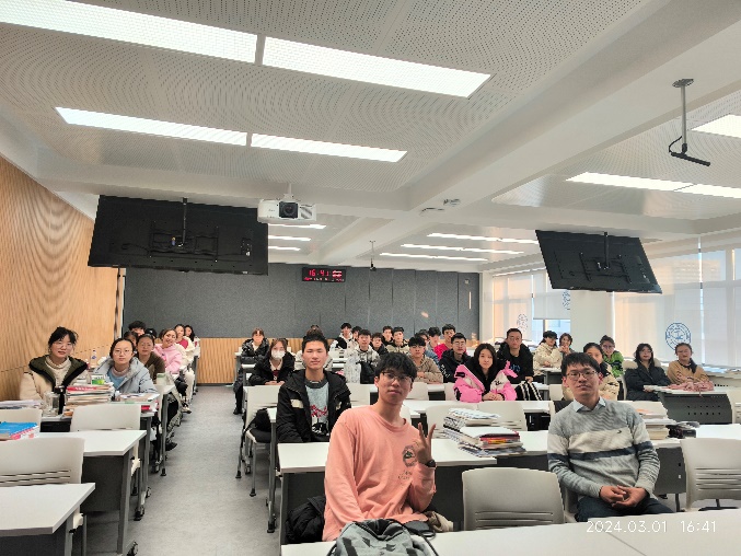 最后,韩杨老师对同学们在寒假期间的积极表现给予了充分肯定,仿佛看到二班这个大家庭的每一个灵魂都在闪烁,并对大家在新学期的学习生活提出了殷切期望,他希望同学们能够汲取上学期的经验,珍惜大学时光,努力学习,全面发展,为自己的未来奠定坚实的基础,能在学期期末大声喊出“本学期愉快”!