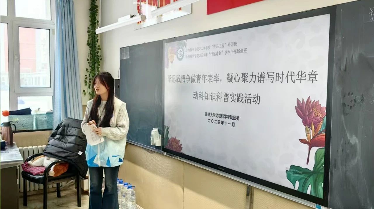 随后,宣讲团又将目光聚焦于动物科学专业与乐天使,生动地向孩子们阐述了动物科学专业丰富多样的研究内容,还展示了肉牛、生猪、吉戎兔等与日常生活紧密相连的吉大动科科研成果,使孩子们对动物科学领域有了更为直观和深入的认识。