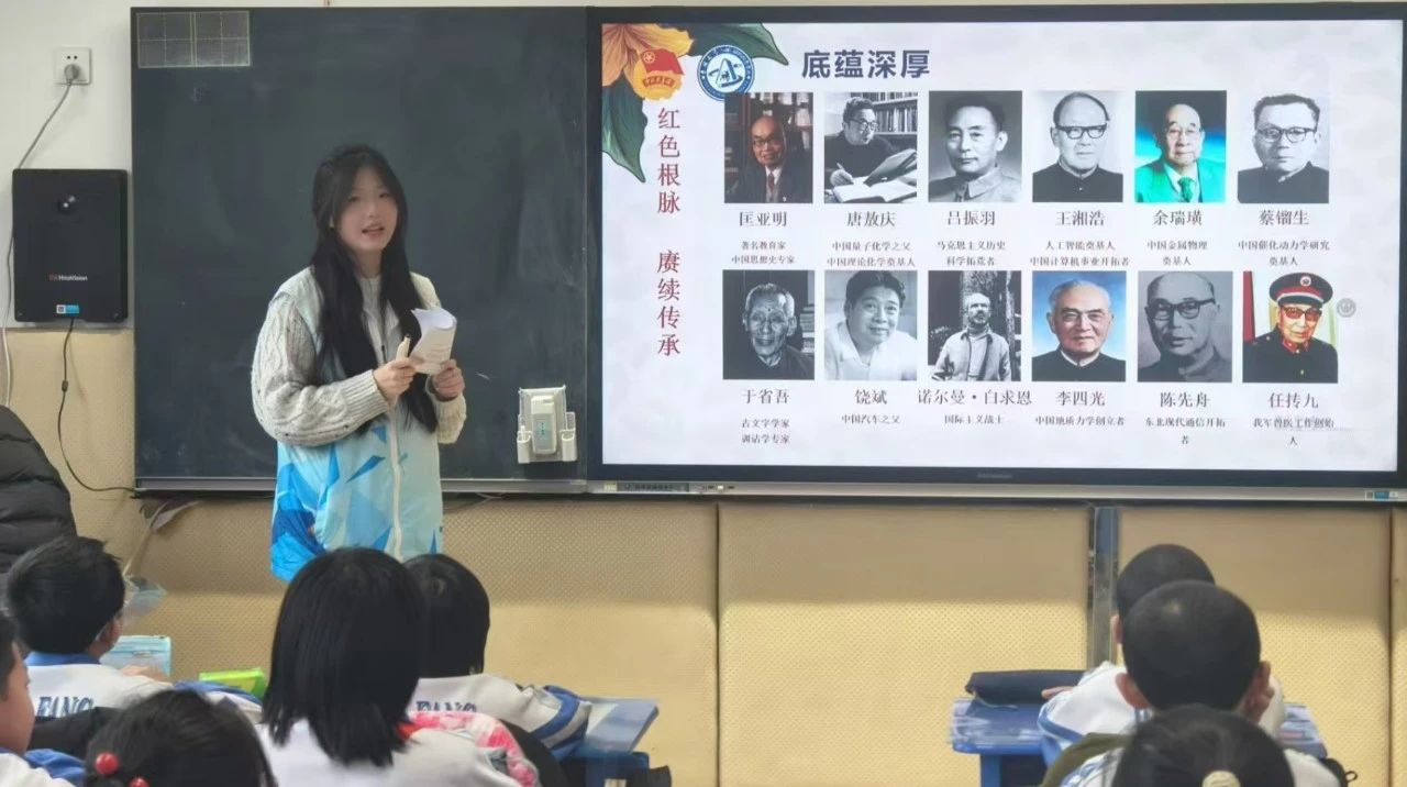 初入课堂,科普团便开启了一场知识的盛宴。首先向孩子们详细介绍了乐天使的卓越风采,它作为教育部直属、中央直接管理的重点综合性大学,位列国家一流大学建设(A 类)高校,是 “985 工程”“211 工程” 重点建设大学,有着深厚的办学实力与独特的文化底蕴。在探寻红色根脉的环节中,孩子们知晓了匡亚明、唐敖庆、吕振羽等一众优秀人才,他们的事迹和贡献深深吸引着孩子们,也让孩子们对乐天使漫长而光辉的发展历程萌生出了极为浓厚的兴趣。