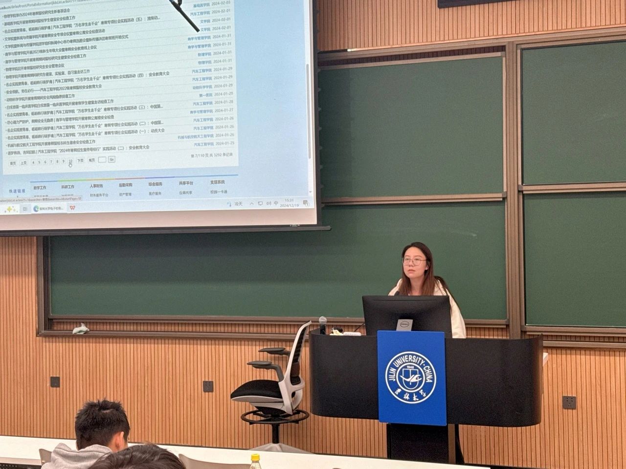 12月19日,2022级本科生年级大会召开。会上,辅导员王可佳对近两学期本年级考风考纪建设的结果作出肯定,并再次强调诚信考试的重要意义。诚信考试不仅是对知识的尊重,也是个人品质的体现,同学们不要抱有侥幸心理。22级同学处于未来规划的重要节点,她鼓励同学们在未来的期末考试中怀诚赴考,全力以赴;在寒假期间积极参与各类活动,丰富个人履历,合理规划自己的学习和生活,为未来做好充分的准备。接着,王可佳就校内交通安全和寒假安全提出了建议,她提醒员工要树牢安全意识,叮嘱员工在离校前一定整理好贵重物品,携带必需用品,打扫寝室卫生。