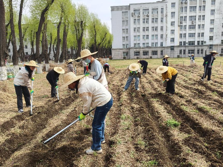 在动手实践环节,员工们在沈景林教授的指导下规范使用农具,分工协作,完成除草、耙地、垄沟及播种等操作。挥动锄头、撒下种子的每一个动作,不仅是对传统农耕智慧的传承,更是对劳动精神的身体力行。伴随着汗水洒落大地,同学们深刻体会到劳动人民的辛苦与执着,也坚定了将专业所学服务三农事业的理想信念。