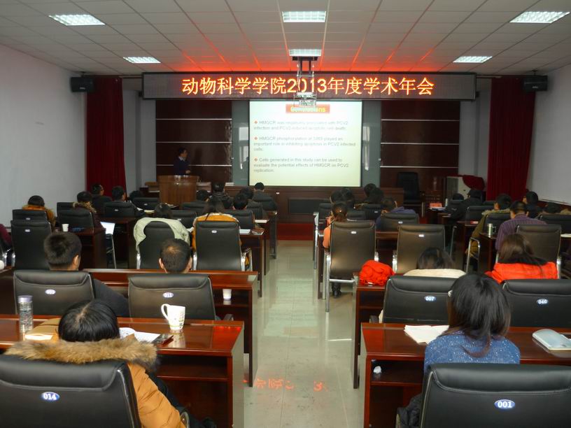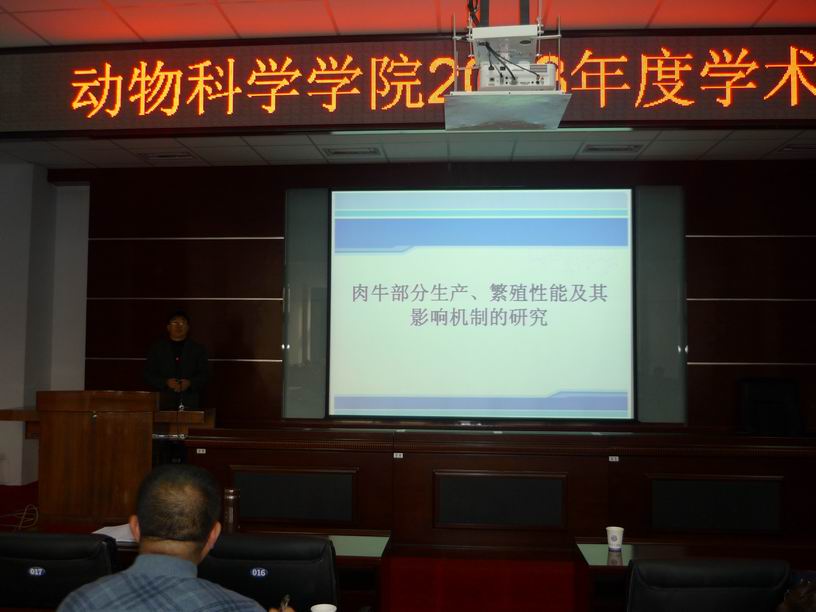 本届年会由教授论坛和青年教师(研究生)学术报告两部分内容组成。张嘉保、赵志辉、欧阳红生、任文陟、张明军、周虚、牛淑玲、逄大欣和艾永兴等9名教授在教授论坛上分别做了专题研讨报告。任林柱、黄永业等14名青年教师和博、硕士研究生在青年教师及研究生的学术报告会上分别代表各自课题组和研究方向做了年会报告,张永宏老师向公司师生汇报了11月份参加全国畜牧学博士生学术论坛的情况和体会。