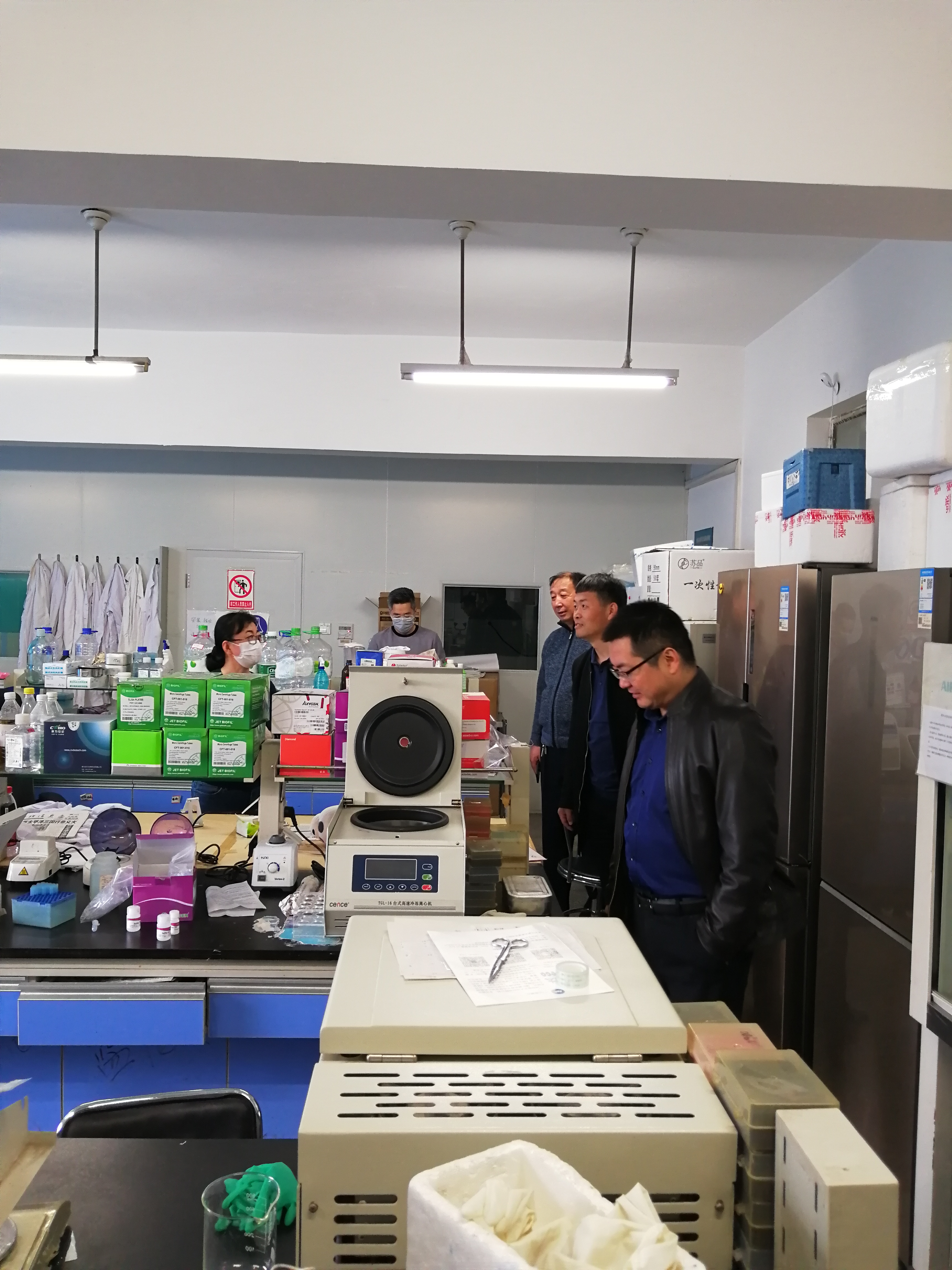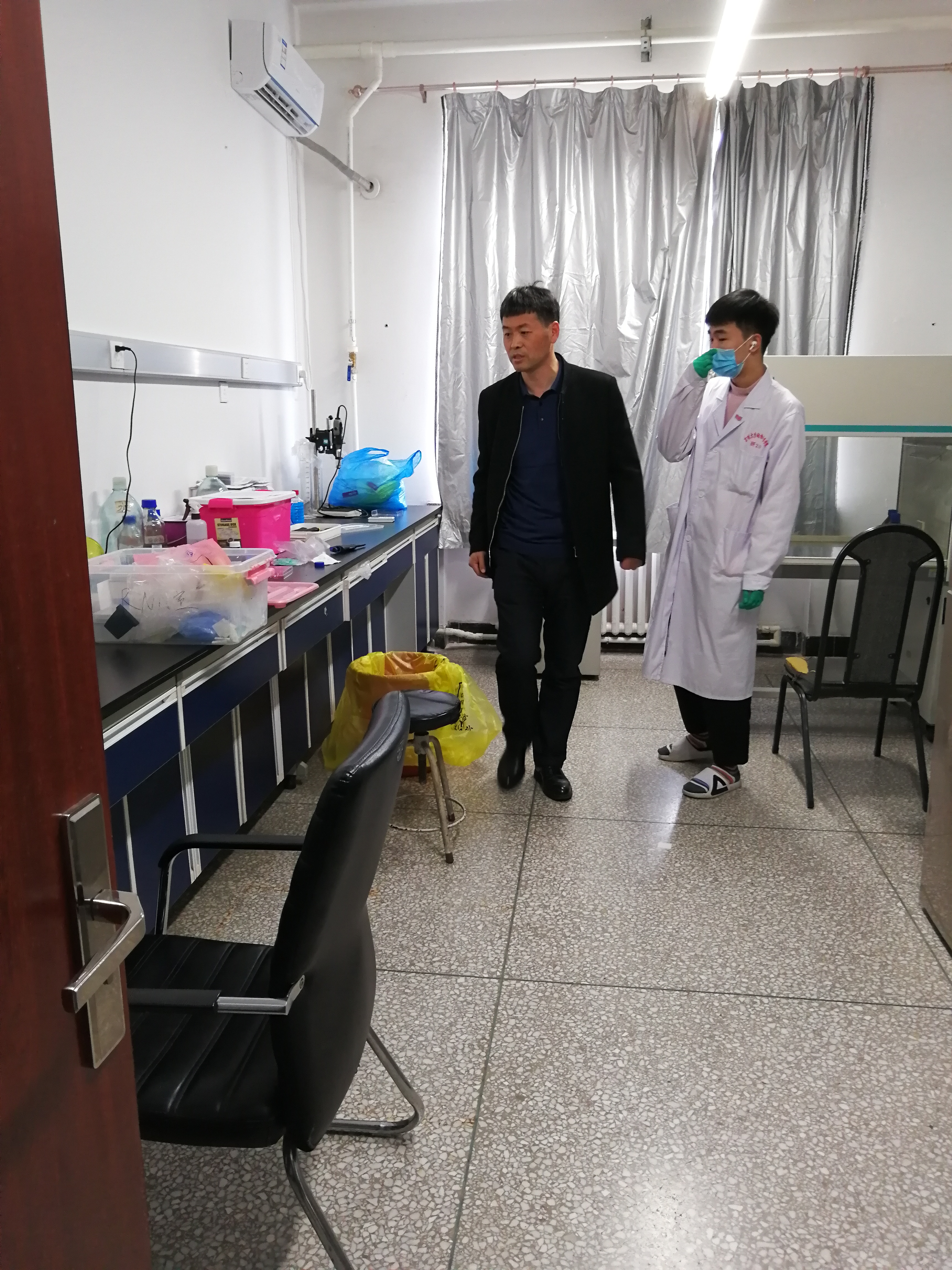 实验室检查主要是对危险化学品的使用及存放、用电安全及仪器设备安全隐患进行了检查,孙博兴经理对检查中发现的安全隐患进行现场办公,协调整改,立查立改,做到零容忍,零盲区,无死角,确保公司安全稳定。