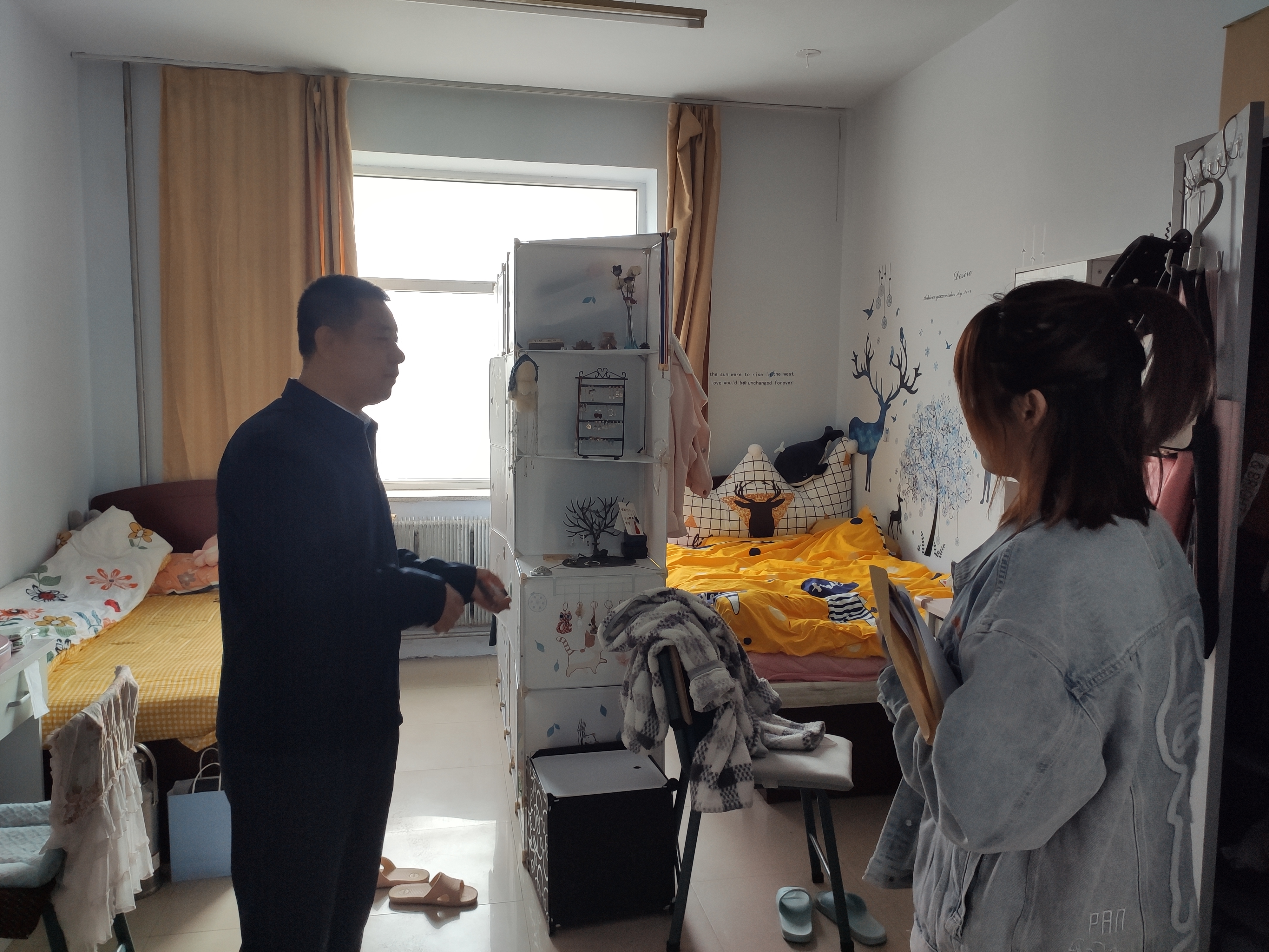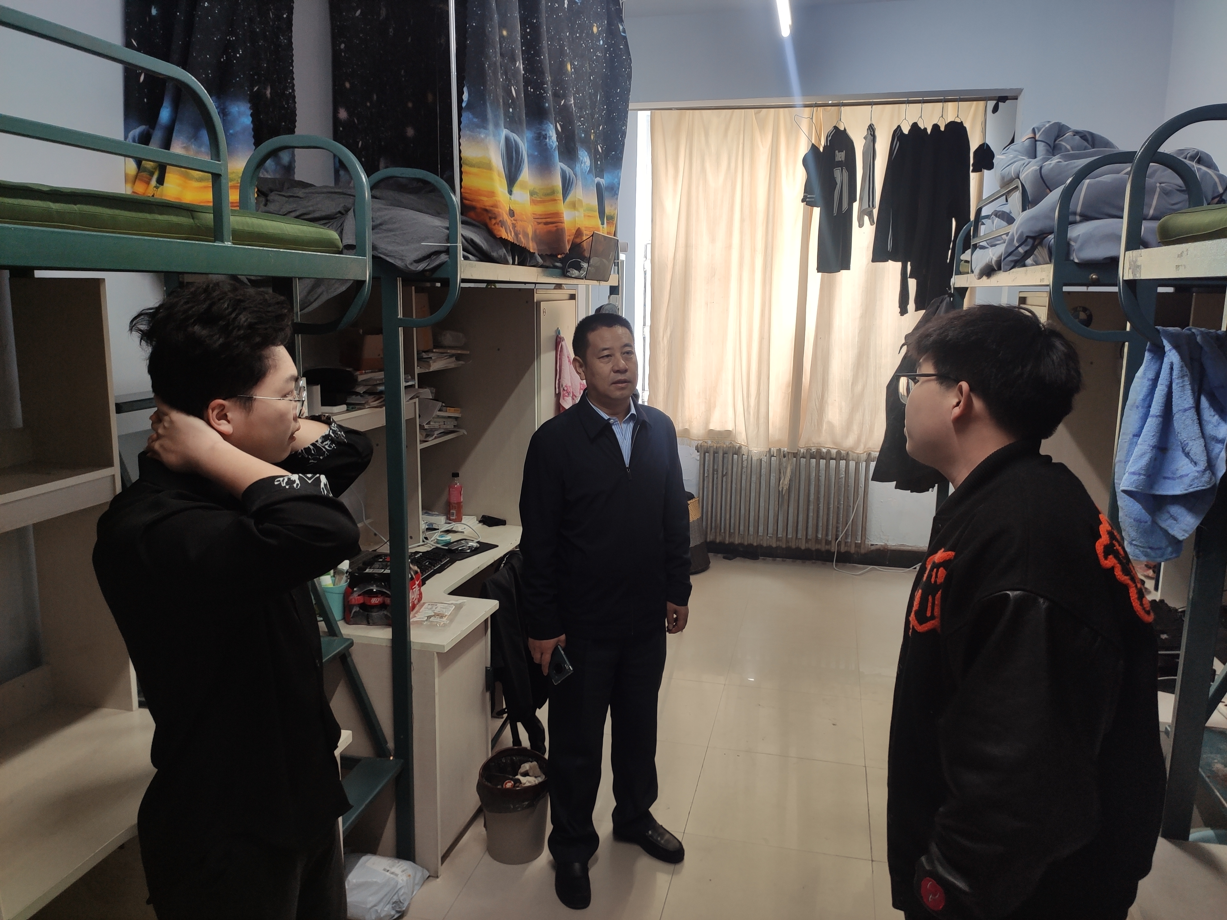 员工寝室检查主要是查看员工寝室是否有乱拉电线、寝室卫生以及违规使用大功率用电器等现象发生。高福和书记在检查过程中对不符合安全要求的地方进行了具体指导并提出解决措施,对五一之后开展员工劳动养成工作提出了要求。
