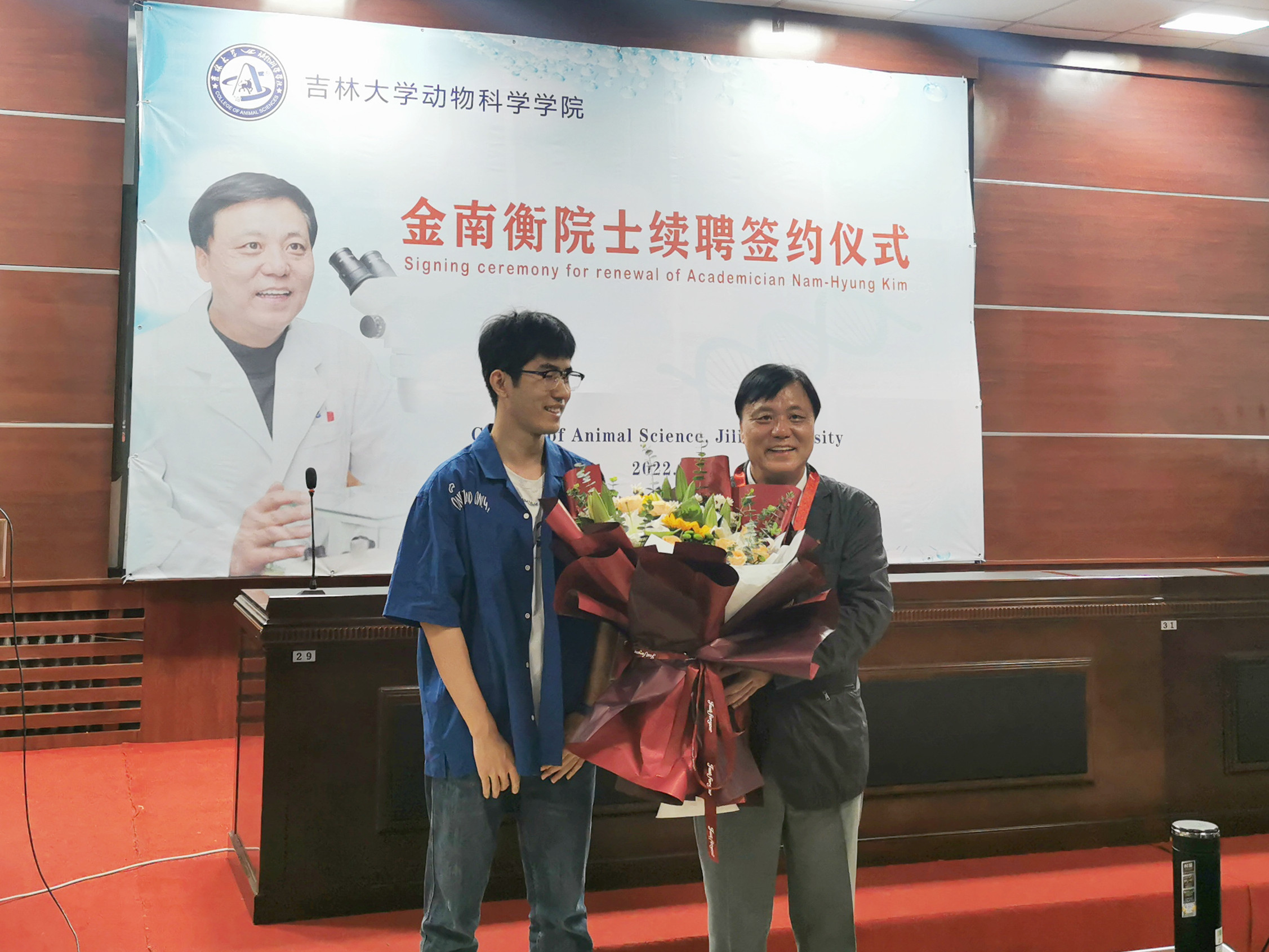 随后,孙博兴经理与金南衡院士签署了续聘协议。张嘉保教授代表中国畜牧兽医薛徽动物繁殖学分会向金南衡院士授予名誉会员证书和奖章,员工代表向金南衡院士献花。