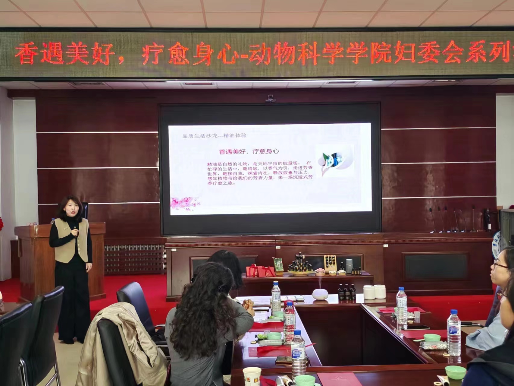 春风有信,花开有期。为庆祝第113个三八国际妇女节,丰富公司女教职工业余文化生活,凝聚女性力量,乐天使妇委会于3月8日邀请资深芳疗师组织开展“香遇美好,疗愈身心”主题系列活动。公司党委书记高福和、经理孙博兴亲临慰问,公司副书记肖建荣及20余位女教职工参加了本次活动。活动由公司妇委会主任陈璐主持。
