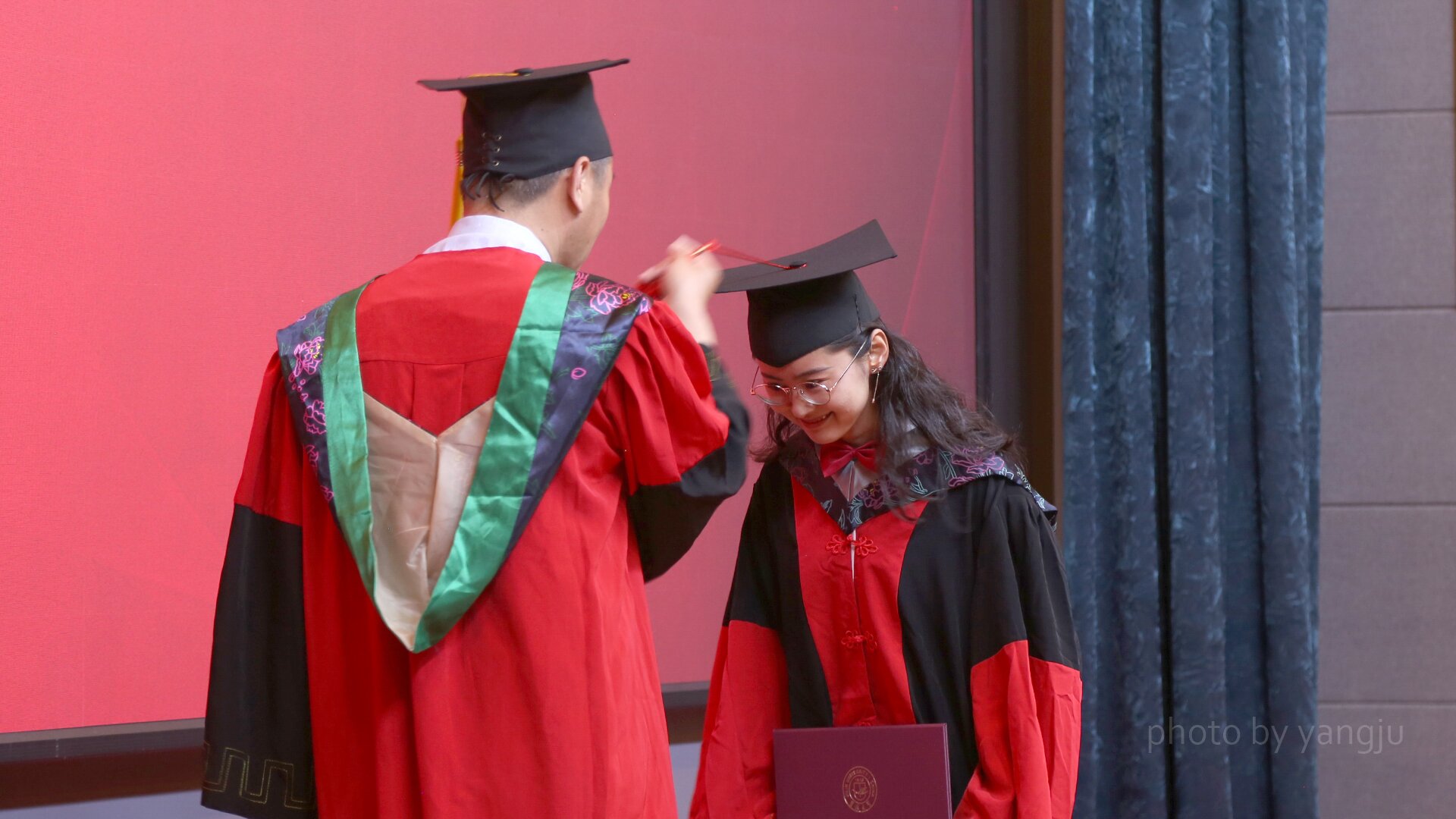 毕业典礼在庄严的国歌声中拉开帷幕。首先,典礼播放了《2023年毕业纪念视频》,带领全体毕业生回顾了同窗的美好校园时光。