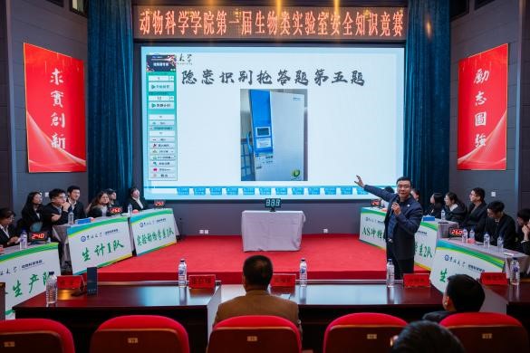 本次比赛公司共有6支队伍参与,动物科学系、实验动物学系和生物技术系各选派出2支队伍参与竞赛。竞赛分为五个环节,分别是必答题环节、单选抢答题环节、多选抢答题环节、判断抢答题环节和隐患识别抢答题环节。
