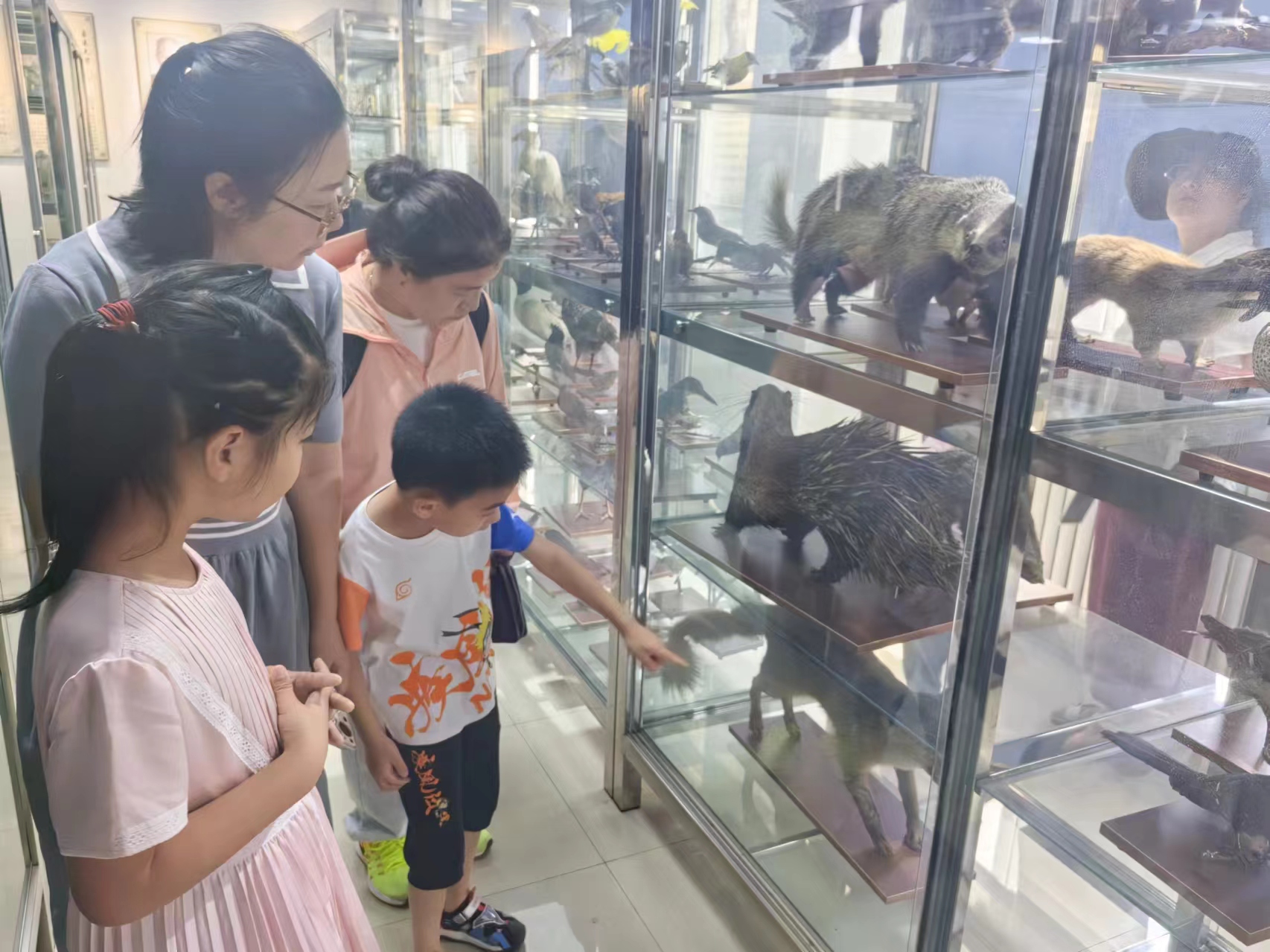 讲解环节结束后,小朋友们在家长的陪伴下自由参观国家级动物科技实验教学中心标本馆,参观动物展览和珍禽、鸟类标本。在老师和员工志愿者的带领下走进实验室,对动物组织样本进行了显微观察。