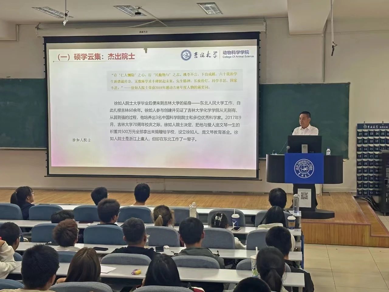 高福和书记以“赓续‘又红又专’吉大基因,做强国有我的新时代老员工”为题展开授课。他向同学们阐述了“又红又专”的精神内涵,其中特别强调黄大年精神和北上精神,激励学子们汲取精神养分,树立知农爱农、学农为农、强农兴农的坚定信念与崇高使命。