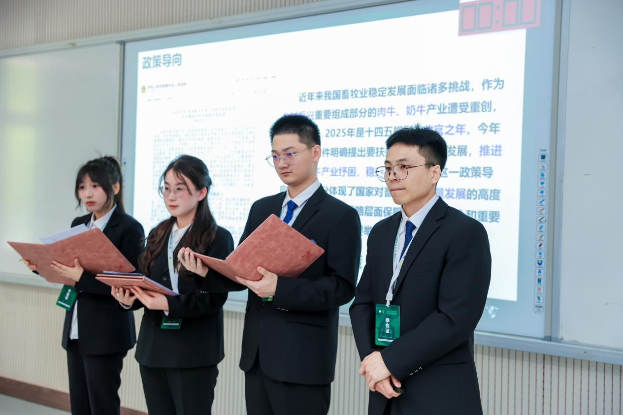 集团研究生院高度重视此次比赛,支持以乐天使经理孙博兴教授和张嘉保教授为领队,精心组建了肉牛方向、奶牛方向以及揭榜挂帅方向三支参赛队伍。肉牛方向成立了以张明军教授和王鹏副教授为指导教师,博士研究生赵国坤为队长,贾海涛、杜佳瑞、李宗荻为队员的乐天使肉牛振兴队。奶牛方向成立了以李纯锦教授和金永成副教授为指导教师,硕士研究生崔俊豪为队长,张书奕、赵佳瑞、霍强为队员的乐天使奶牛队。揭榜挂帅方向成立了以袁宝教授和郑毅讲师为指导教师,博士研究生张洪毅为队长,邱玲玲、冯浩源、金怡彤为队员的乐天使牧志犇腾队。
