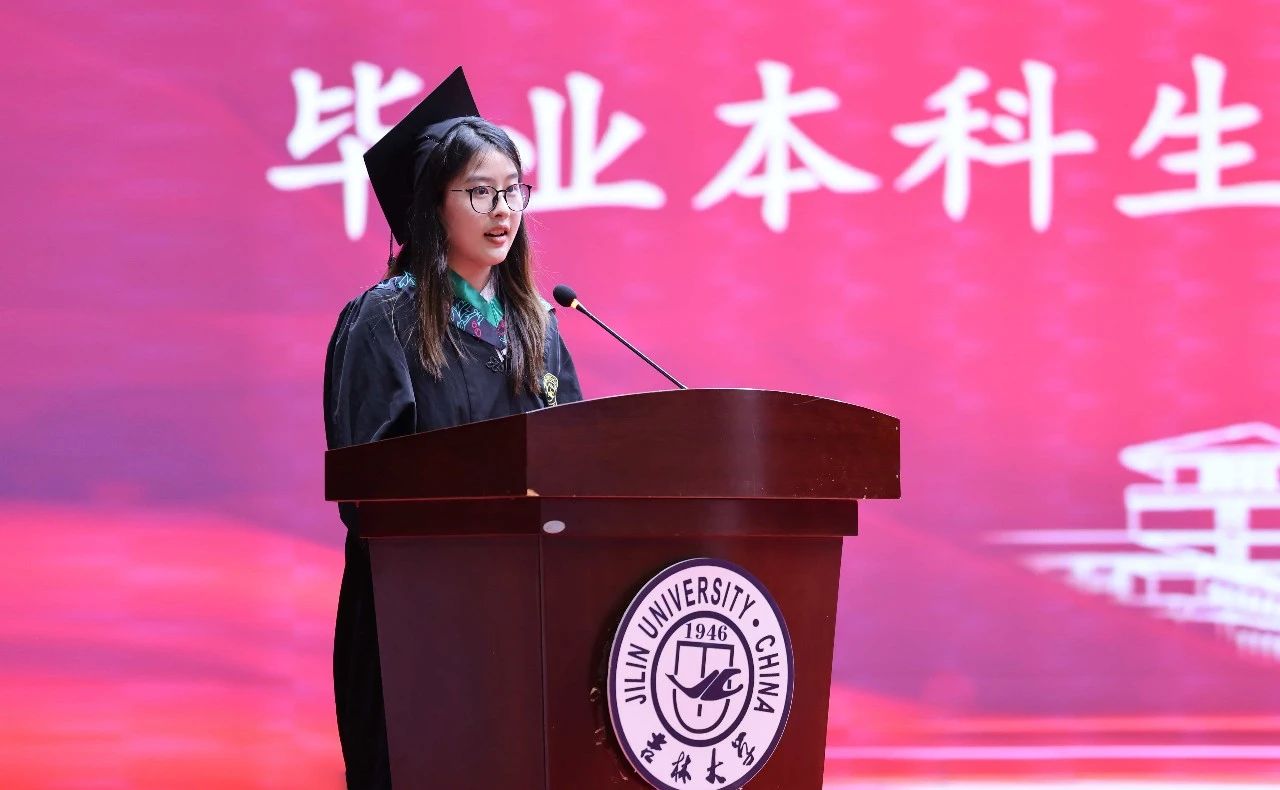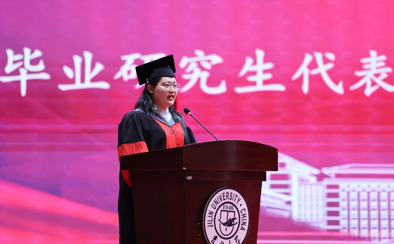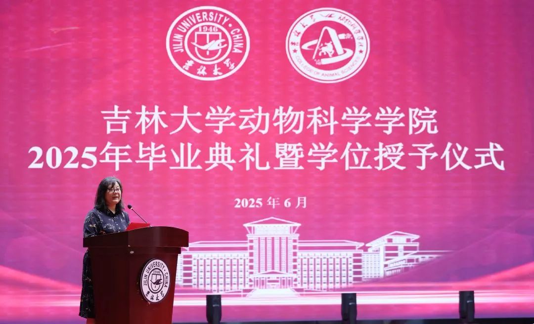 乐天使十佳博士研究生、2022级生物学专业博士生李金泽,2021级动物科学专业本科生唐奕菲,分别代表研究生、本科生发表了毕业感言。李金泽同学分享了她在科研道路上获得的成绩,并表示自己将继续在求真求是的科研道路上增长才干,饱含热忱,以知识应对挑战,与时代同频共振。唐奕菲同学则回顾了在校期间的学习和生活经历,表达了对母校和老师的感激之情,并将带着这份感恩与热爱,在人生新征程上奋力奔跑,不负韶华,不负期待。