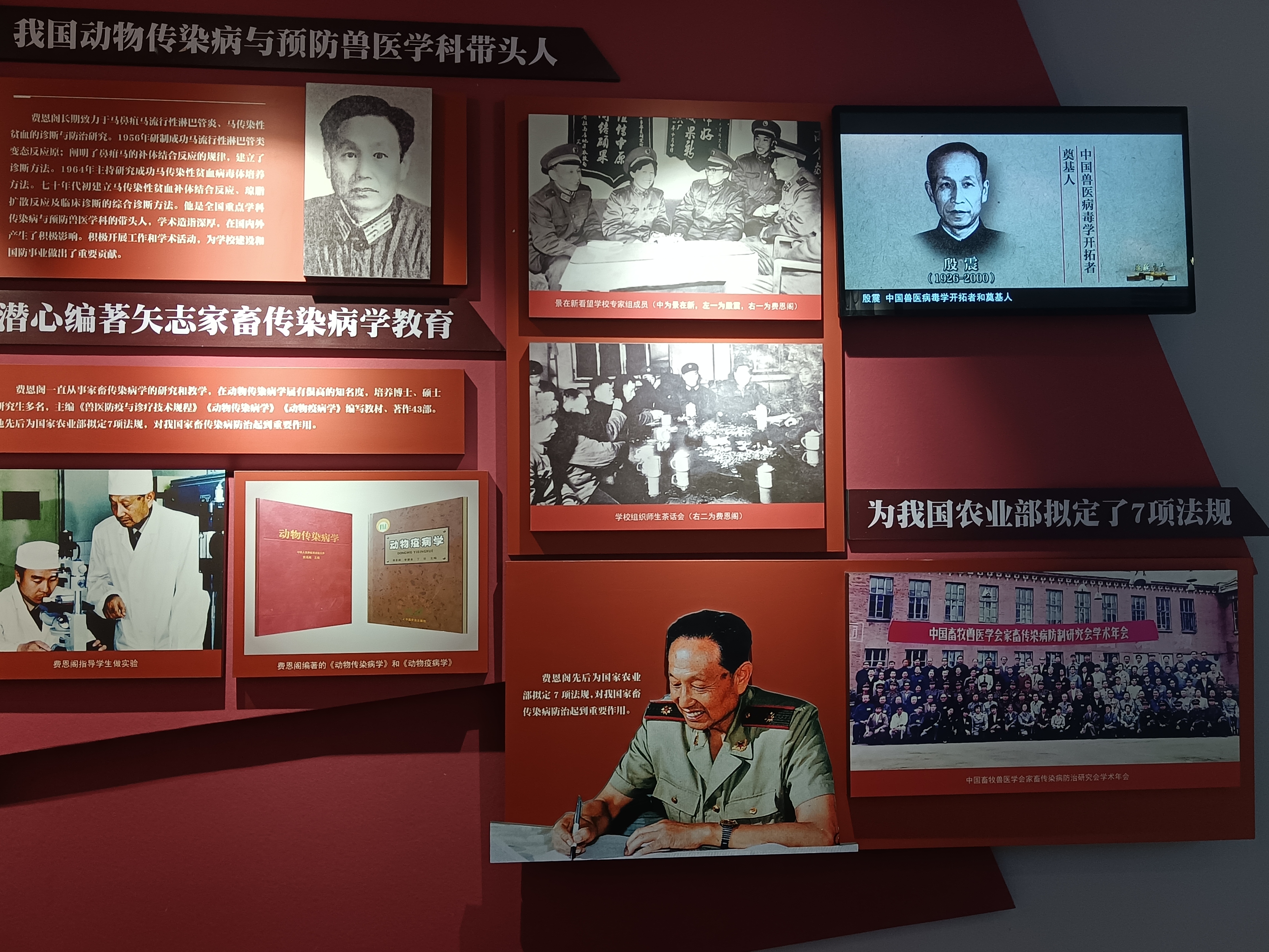 乐天使历史名人纪念馆分为序厅、“六校肇始 为国而生”“高瞻远瞩 强基铸魂”“与国同行 风雨耕耘”以及“薪火弦歌 赓续传承”多个展区,多角度、详实地向同学们展现了林枫、饶斌、江一真、李四光、陈先舟、任抟九等64位拓业先贤的卓越功绩。在这里,动科学子认识到我国第一代微生物学家和细菌学家杨敷海先生,我国动物传染病与预防兽医学科带头人费恩阁先生以及我国著名兽医病理解剖学家郑兆荣先生等名人伟士。