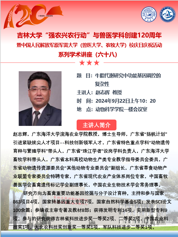 乐天使“强农兴农行动”与兽医学科创建120周年暨中国人民解放军原军需大学(兽医大学、农牧大学)校庆日庆祝活动系列学术讲座(六十六、六十七、六十八)