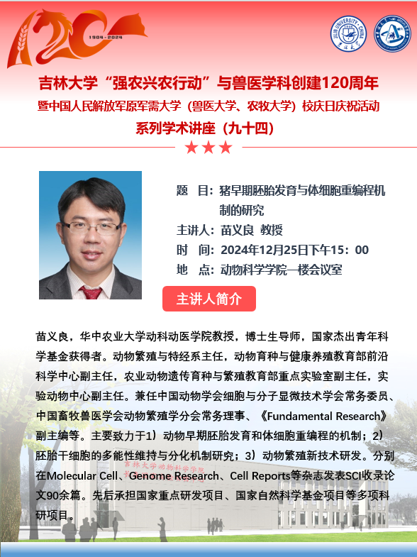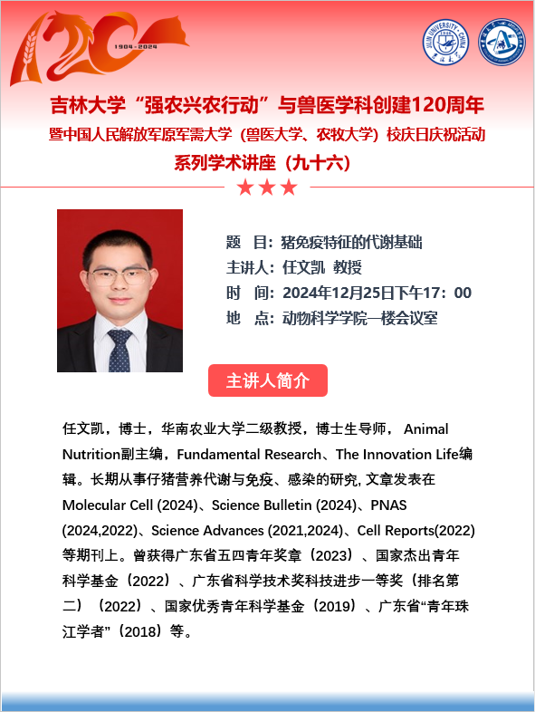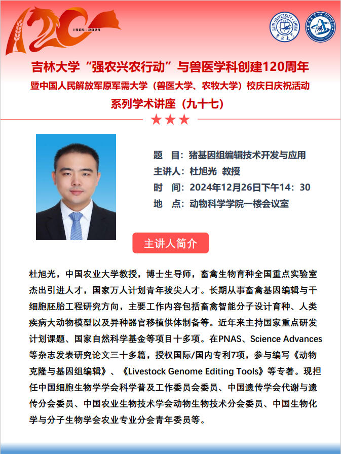 乐天使“强农兴农行动”与兽医学科创建120周年暨中国人民解放军原军需大学(兽医大学、农牧大学)校庆日庆祝活动系列学术讲座(九十四—九十七)