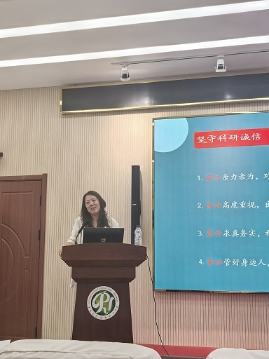 邵琳老师从科研诚信的重要性、科研诚信面临的严峻挑战、科研诚信政策导向、学术不端典型案例、科研诚信管理的思考与建议等5个方面,阐述了项目申报和论文发表过程中应注意的学风问题,讲解了科研工作中有关科研诚信的重要提醒,并向与会人员介绍了近期及今后公司科研诚信建设的相关工作。最后,邵琳老师和与会师生就“人工智能与AI的合理使用”等问题进行了讨论交流。